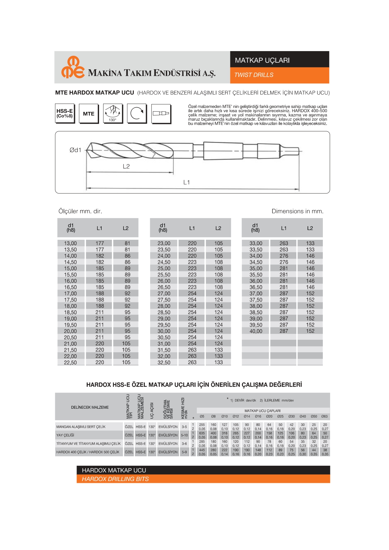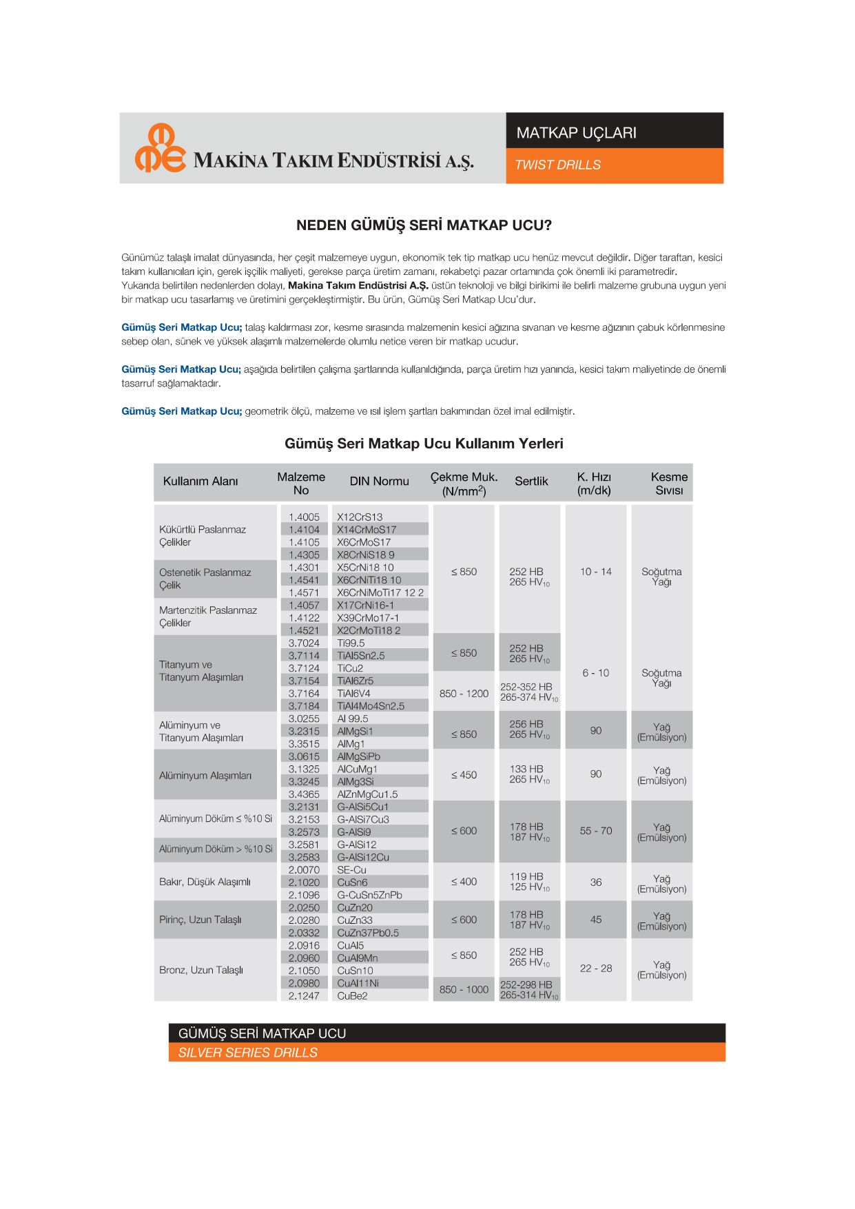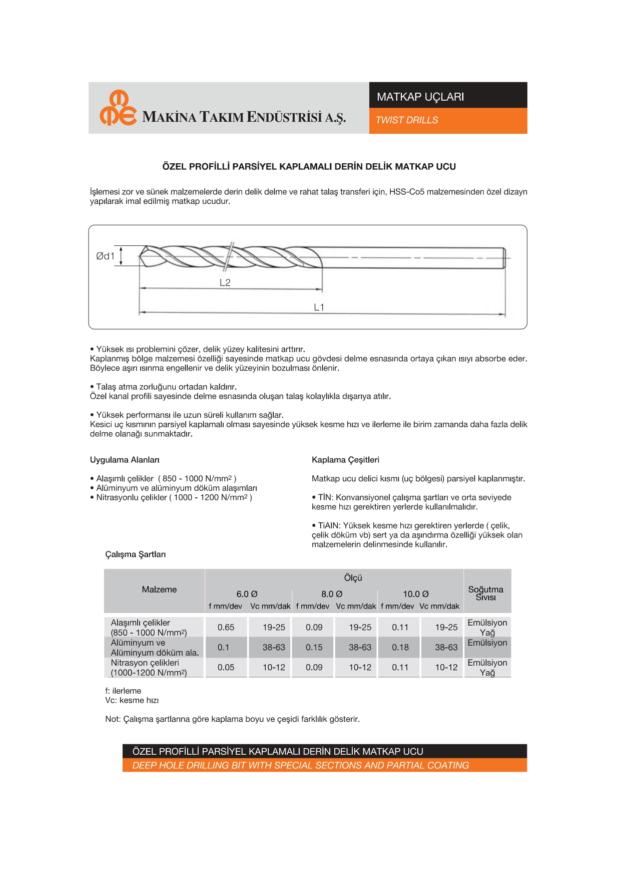 Metal, döküm ve alüminyum yüzeylerde pürüzsüz, hassas ve uzun ömürlü delme performansı sunar.