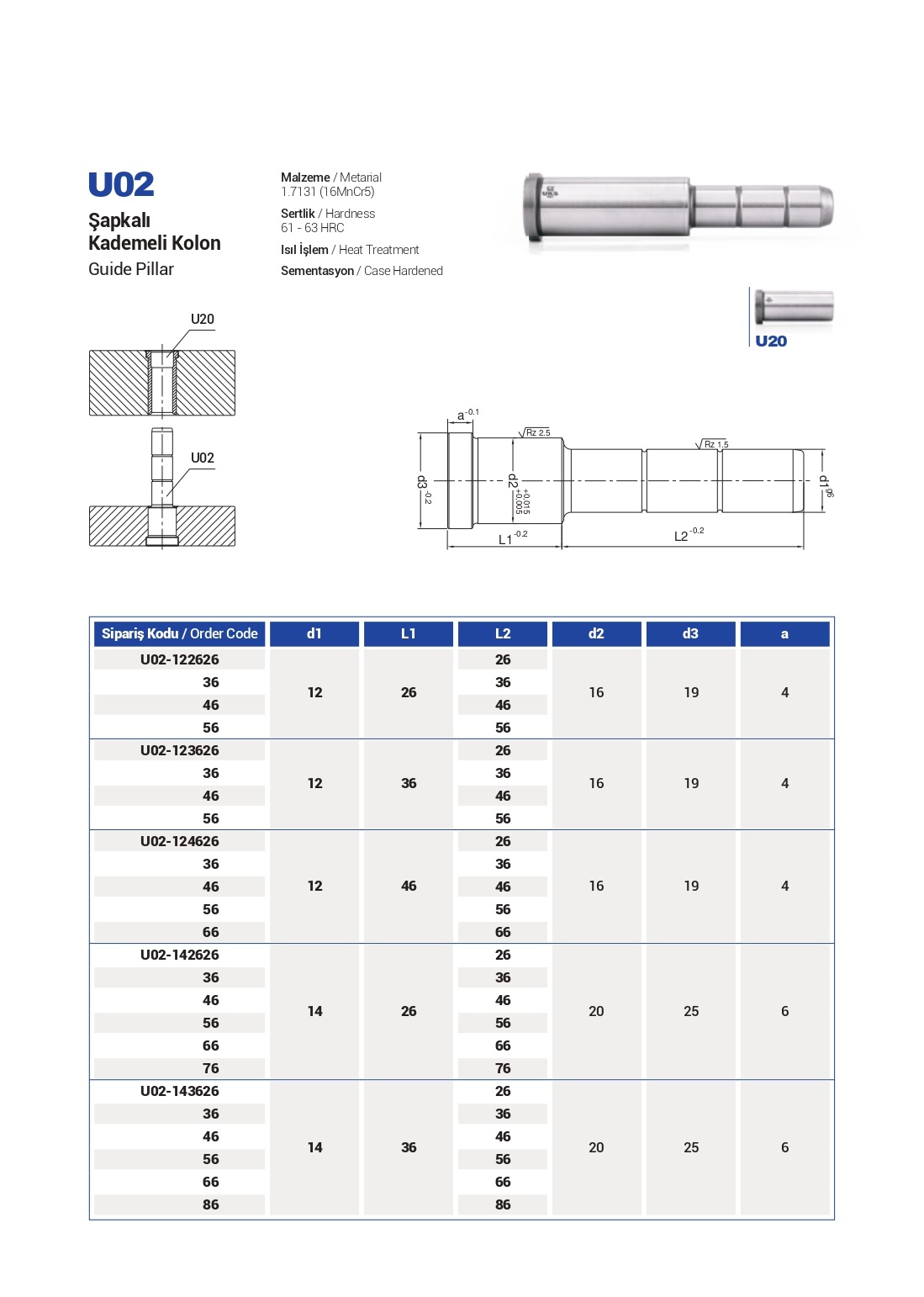 Sertleştirilmiş çelikten üretilir, aşınmaya dayanıklıdır.
